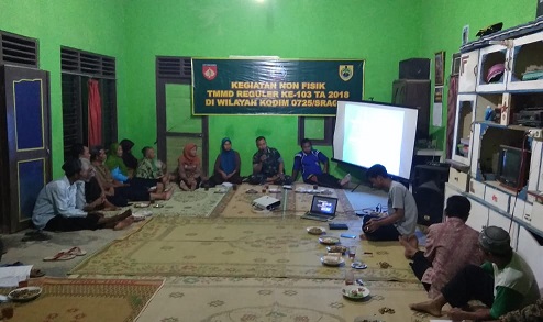 FOKUS JATENG-SRAGEN-Program TMMD Reguler ke-103 Kodim 0725/Sragen di Desa Sukorejo, Kecamatan Sambirejo, Sragen, Jawa Tengah, sudah setengah perjalanan. Kegiatan fisik siang hari berjalan tetapi juga nonfisik juga dilaksanakan. Seperti yang dilakukan di rumah Tugiyo, ketua RT 08 Desa Sukorejo, yakni berupa penyuluhan tentang bela negara Kamis malam 1 Oktober 2018.