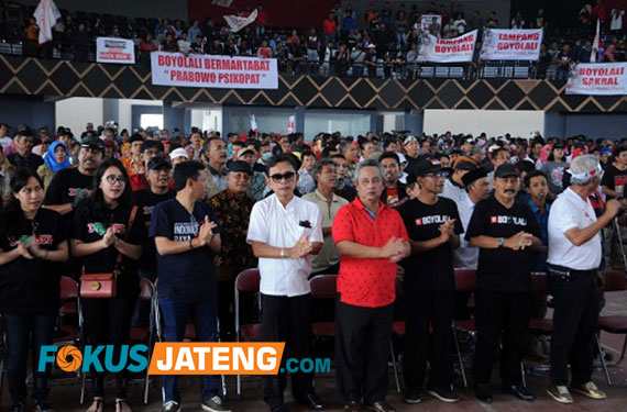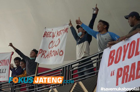 FOKUS JATENG-BOYOLALI-Jumlah warga Boyolali yang turun ke jalan memprotes pernyataan Prabowo Subianto mengenai “tampang Boyolali” diperkirakan mencapai puluhan ribu orang Minggu 4 November 2018. Pernyataan Prabowo tersebut dinilai telah merendahkan martabat warga Boyolali.