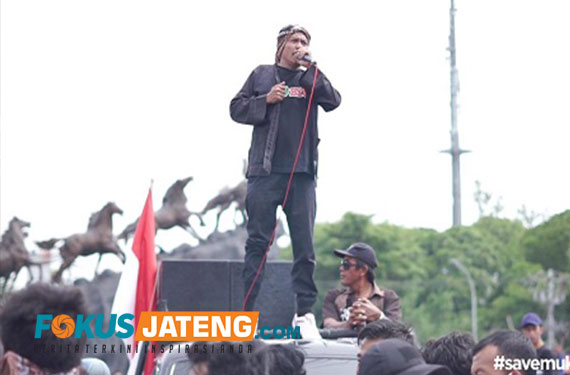 Salah satu peserta aksi berorasi di atas mobil Minggu 4 November 2018. (credit-Yulianto/Fokusjateng.com)