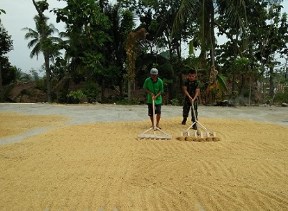 Serka Hartono yang baru saja selesai bekerja dan mau melaksanakan salat kebetulan melintas di depan rumah Warsidi (49), warga Desa Sukorejo. Melihat Warsidi sedang menjemur dan meratakan gabah, Serka Hartono merasa terpanggil untuk sekadar membantu warga yang terlihat letih dan bercucuran keringat ini.