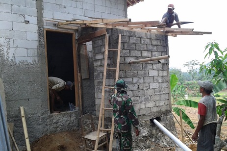 Tampak Satgas TMMD gotong-royong bersama warga untuk memasang tutup lubang pembuangan dengan menggunakan bambu yang dipotong kemudian dilapisi plastik untuk selanjutnya dilakukan penimbunan. Pembangunan sanitasi ini diharapkan dapat meningkatkan kesehatan warga yang kurang mampu membuat jamban sendiri.