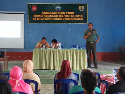 FOKUS JATENG-SRAGEN-Kegiatan TMMD Reguler ke-103 Kodim 0725/Sragen saat ini telah merambah ke Desa Kadipiro, Senin 5 November 2018. Di Balai Desa Kadipiro tengah dilaksanakan kegiatan Sosialisasi Pemilu 2019 oleh Petugas PPK (Panitia Pemilihan Kecamatan) yang diprakarsai oleh Kapten Inf Warisman.