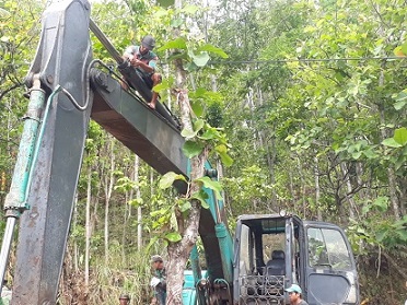 Setelah dicek lebih teliti, ternyata terjadi kebocoran di selang hidrolik tersebut. Sontak hal ini membuat perngerjaan embung agak sedikit terganggu. Namun demikian hal ini tidak menjadikan hambatan bagi Satgas TMMD dan masyarakat untuk bekerja menyelesaikan pembangunan embung.