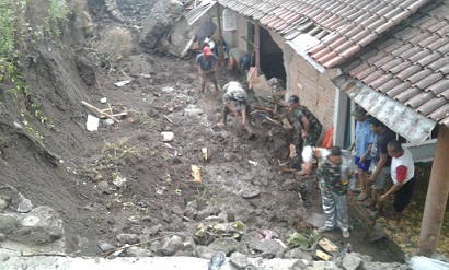 Sementara itu, Danramil Ampel, Kapten Joko Prasetyo menyatakan setelah mendapatkan laporan musibah itu langsung mendatangi lokasi kejadian. Beberapa personil diterjunkan untuk melakukan pembersihan. “Material tanah cukup banyak yang masuk kedalam rumah,” terang dia.