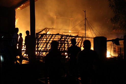 Andi salah satu warga setempat menyampaikan, pada saat kejadian api sudah sangat besar. “Pada saat saya lihat api awalnya berada di belakang rumah sebelah selatan, api semakin besar ditambah tiupan angin yang cukup kencang dari arah selatan, sehingga api dengan cepat melalap dua rumah,” katanya.