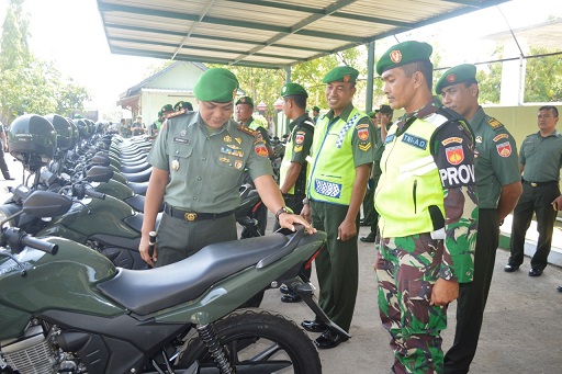 FOKUS JATENG-BOYOLALI-Komandan Kodim (Dandim) 0724/Boyolali Letkol Kav Herman Taryaman, SIP.MH menyerahkan sebanyak 25 kendaraan motor dinas baru Honda Versa kepada Bintara Pembina Desa (Babinsa) yang tersebar di wilayah Kodim 0724/Boyolali, Senin 19 November 2018.