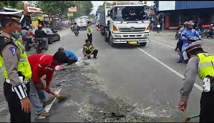Lantas dari arah utara (Semarang) melaju truk yang dikemudikan Lilik Sukohadi Wahono (44) dengan kecepatan sedang. Warga Dukuh/Desa Soditan, Kecamatan Lasem, Kabupaten Rembang itupun tak bisa menghindar. Benturan keras pun tidak bisa terhindarkan.