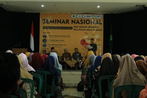 FOKUS JATENG-SUKOHARJO-Dewan Eksekutif Mahasiswa Fakultas Ushuluddin dan Dakwah (DEMA FUD) bekerjasama dengan Dewan Eksekutif Mahasiswa Kabinet Persatuan (DEMA I) IAIN Surakarta menyelenggarakan Seminar Nasional, Jumat 23 November 2018. Acara bertemakan “Rejuvenasi Konsep Bela Negara di Era Milenial” ini digelar sekaligus Grand Opening Pelatihan Bela Negara di Gedung Pasca Sarjana Lt.4 IAIN Surakarta.