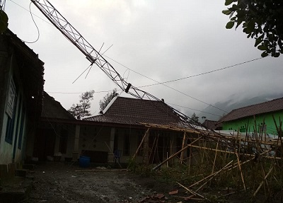 Kanopi rumah warga di lereng Merapi Selo, Boyolali terbang akibat puting beliung. (credit-Yulianto/Fokusjateng.com)