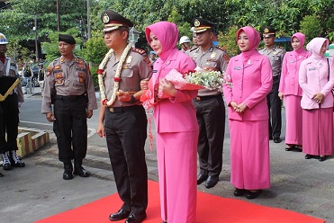 FOKUS JATENG-SRAGEN-Kapolres Sragen AKBP Arif Budiman digantikan dengan AKBP Yimmy Kurniawan. Pisah sambut dilakukan tradisi pedang pora di halaman Mapolres Sragen Kamis 6 Desember 2018.