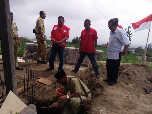 FOKUS JATENG-BOYOLALI-PMI Kabupaten Boyolali bersama Camat Cepogo Insan Adi Asmono selaku ketua PMI Kec cepogo serta Kades Wonodoyo dan sibat Wonodoyo memulai pembangunan gedung serba guna evacuation center (Tempt Penampungam Sementara).