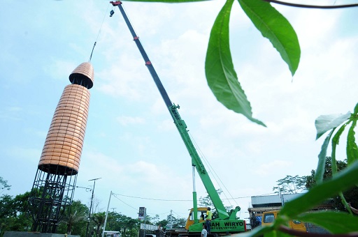 FOKUS JATENG-BOYOLALI-Menara Jagung yang selama ini berdiri kokoh di Pertigaan Jalan Soedirman di Kompleks Perkantoran Pemerintah Kabupaten Boyolali sebentar lagi akan mengalami perubahan yang cukup signifikan. Seperti diketahui bahwa Menara Jagung yang dulu berbahan dasar jagung asli memiliki daya tahan yang kurang memadai.
