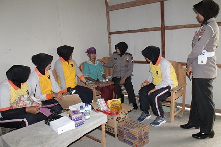 Selain mendengar curhatan hati mbah Rijem, para rombongan juga memberikan sejumlah uang tunai dan sembako untuk kebutuhan sehari – hari kedepan, tidak hanya itu rombongan Polwan ini juga membersihkan ruang tamu mbah Rijem.