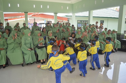 FOKUS JATENG-BOYOLALI-Murid-murid Taman Kanak Kanak (TK) Kartika III Boyolali dari Yayasan Kartika Jaya tampil memukau di hadapan para anggota Persit Kartika Chandra Kirana Cabang XLV Kodiim 0724/Boyolali Selasa 18 Desember 2018. Mereka menampilkan tarian kreasi terbaru dan senam sehat di aula Koramil 9/Sawit.