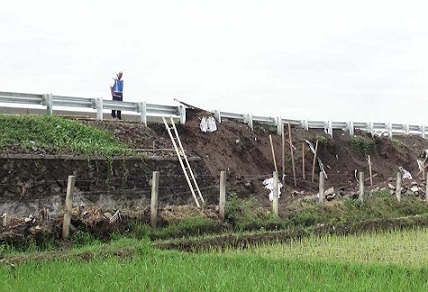 FOKUS JATENG-BOYOLALI-Talud ruas tol Salatiga-Kartasura, di kilometer 489 Desa Tanjungsari, Kecamatan Banyudono, Boyolali, Jawa Tengah, longsor Rabu 26 Desember 2018. Penyebab longsor ini diduga lantaran guyuran hujan deras beberapa hari lalu.