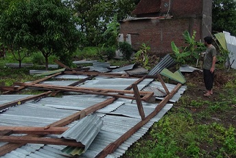 Saat di luar rumah dia melihat beberapa pohon jati belakang rumahnya tumbang. Suara gemuruh dari atap dari esbes terdengar dengan keras. Begitu juga dengan pohon jati yang tak jauh dari rumahnya tumbang dan memblokir jalan desa.