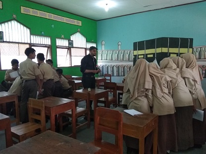 FOKUS JATENG-BOYOLALI-Madrasah Tsanawiyah Negeri (MTsN) 9 Boyolali menggelar kegiatan visiting foreigner (kunjungan orang asing) Sabtu 2 Februari 2019. Kegiatan ini tidak semata-mata hanya selfie dan bergaya foto dengan orang asing, tapi juga berbaur dalam pembelajaran.