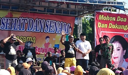 Salah satunya yang dilakukan Calon Kepala Desa Gaum, Kecamatan Tasikmadu, Karanganyar yang Minggu pagi (10/2) menggelar jalan sehat di Lapangan Desa setempat. Antusias masyarakat Desa Gaum cukup besar dengan adanya Jalan Sehat yang diselenggarakan oleh Calon Kepala Desa Incumbent Nur Setyo Utami.