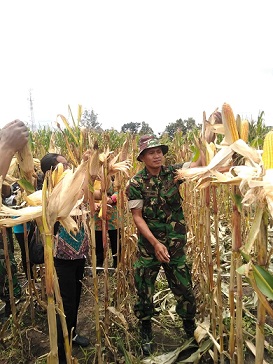 Kegiatan yang dilaksanakan oleh para Babinsa di wilayah bersama PPL adalah untuk mengetahui berapa besarnya potensi panen jagung yang ada di wilayah Desa Beji Kecamatan Andong. Sesuai yang disampaiakan oleh petugas PPL Bp. Sapto Nugroho jenis jagung yang diubin kali ini adalah jenis Hibrida P 21 dengan hasil ubinannya sebanyak 30 tongkol jagung dengan berat 71,5 Kg.