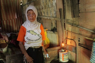 FOKUS JATENG-SRAGEN-Mbah Lampi (75), warga Dusun Ngaringan RT 05, Desa Gading, Kecamatan Tanon, Kabupaten Sragen, Provinsi Jawa Tengah sudah puluhan tahun hidup sangat memprihatinkan. Pasalnya, janda renta tersebut sejak puluhan tahun hidup dalam kegelapan saat malam hari tanpa ada cahaya lampu listrik.