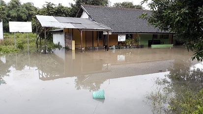 “Kalau dibelakang (puskesmas pembantu) air mencapai kira-kira satu meter,” ujarnya. Sedangkan untuk di dalam Puskesmas air hanya kira-kira setengah meter.