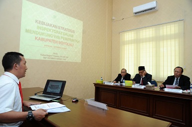 “Kegiatan hari ini adalah uji gagasan atau uji program peserta seleksi promosi Jabatan Pimpinan Tinggi Pratama di Pemerintah Kabupaten Boyolali diselenggarakan tiga hari Kamis sampai Sabtu dan hari ini jadwalnya Inspektur Inspektorat,” jelas Ketua Panitia Seleksi JPT Pratama Kabupaten Boyolali, Anwar Hamdani pada Sabtu (23/2) di kantor BKP2D Kabupaten Boyolali.