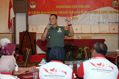 Untuk itu pihaknya menyampaikan, program bela negara dinilai penting sebagai upaya untuk mempertahankan serta menumbuhkan kecintaan terhadap negara dari sejumlah ancaman kekinian. Kegiatan ini diikuti ratusan peserta dari lingkup pendidikan, tokoh masyarakat dan tokoh agama di Boyolali ini dilaksanakan Kemenhan dalam rangka menanamkan sikap mental dan perilaku warga negara dalam membela Negara.