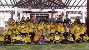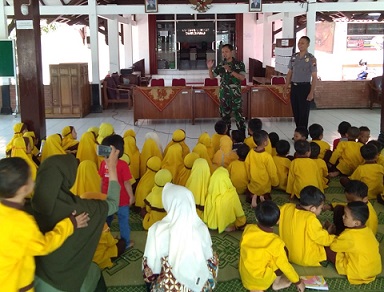 Anak-anak TK KB Cahaya Al Quran foto bersama anggota TNI/Polri. (credit-Yulianto/Fokusjateng.com)