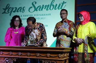 FOKUS JATENG-BOYOLALI-Bertugas selama setahun sebagai Kepala Kantor Pertanahan (Kantah) Kabupaten Boyolali, Heri Sulistiyo kini beralih tugas ke Kabupaten Kudus. Sementara penggantinya, Kasten Situmorang yang sebelumnya menjabat di lingkup Kementerian Agraria dan Tata Ruang/ Badan pertanahan Nasional (ATR/BPN).