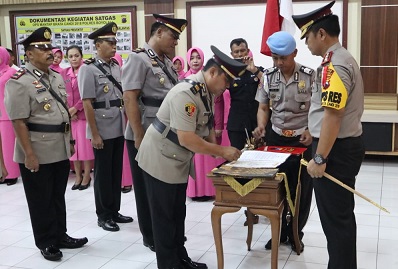 FOKUS JATENG-BOYOLALI-Polres Boyolali menggelar serah terima jabatan kasatreskrim, kasatnarkoba, dan kasat intelkam Kamis 28 Maret 2019 pukul 09.00 WIB. Kegiatan tersebut bertempat di ruang Bhara Merapi Polres Boyolali.