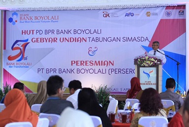 FOKUS JATENG-BOYOLALI-Melewati perjalanan panjang dari tahun 1968, menjadi salah satu Badan Usaha Milik Daerah (BUMD), PT. BPR Bank Boyolali (Perseroda) terus mencatat perkembangan dan kinerja yang positif. Pada peringatan ke-51 tahun ini, lembaga perbankan ini kini mengubah nama dan logo perusahaan seiring dengan tagline yang diusung yakni Bank Boyolali Bertransformasi.
