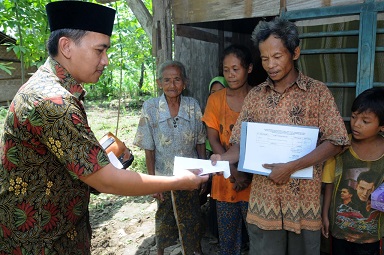 Bantuan yang diberikan berdasarkan pada permohonan dari yang bersangkutan melalui kepala desa. Hal tersebut harus dilalui untuk persyaratan administrasi. Sebagai salah satu bentuk kelengkapan permohonan serta gambaran kondisi riil di lapangan sebagaimana yang terjadi. Sehingga dalam rangka penindaklanjutan bisa dijadikan dasar untuk memberikan besaran atau nomimal yang diberikan.