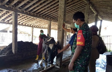 FOKUS JATENG-BOYOLALI-Babinsa Desa Singosari Koramil 2 Musuk Serda Wahit bersama dengan petugas dari Puskesmas Mojosongo yakni Ibu Maimunatun dan Ibu ST Yustina Sarmi,serta Dokter Hewan Dian dan Dokter Hewan Roni dari Dinas Peternakan mendatangi salah satu rumah warga untuk mengecek secara langsung kondisi tempat Alm Bp Suwardi yang sebelumnya terjangkit penyakit Leptospirosis. Selasa (23/04).
