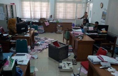 “Setelah mengikat tangan dan mulut penjaga dengan lakban, mereka masuk ke ruang-ruang kantor dan mengobrak-abrik yang ada di situ, termasuk Ruang Keuangan dan ruangan saya ikut juga diobrak-abrik,” ujarnya.