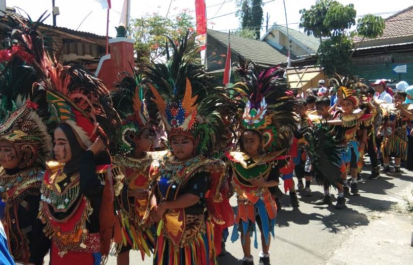 Dengan semangat empat lima dan antusias yang membuncah-buncah, mereka percaya diri mengenakan kostum yang beraneka ragam berikut dengan aksesoris yang tampak kreatif.