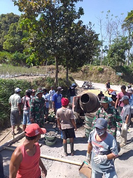 Babinsa Koramil 2/Musuk langsung terjun bersama-sama masyarakat melaksanakan betonisasi jalan. Salah satu wujud kemanunggalan TNI dan rakyat adalah melalui kegiatan-kegiatan karya bhakti seperti ini.