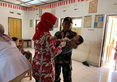 Selain rutinitas, Babinsa juga membantu pelaksanaan program Puskesmas yang ada di wilayah desa. Hal ini dilakukan bertujuan guna mendukung pencapaian keluarga kecil yang bahagia dan sejahtera. Yakni dengan pemberian imunisasi dan gizi pada anak usia bayi umur lima tahun (balita).