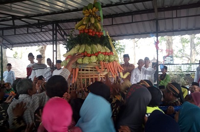 FOKUS JATENG-BOYOLALI-Haul Ki Ageng Singoprono di Makam Gunung Tugel, Desa Nglembu, Kecamatan Sambi, Kabupaten Boyolali, sangat meriah Minggu 15 September 2019. Sebab, ribuan warga hadir dan berebut gunungan berbahan dasar hasil bumi.