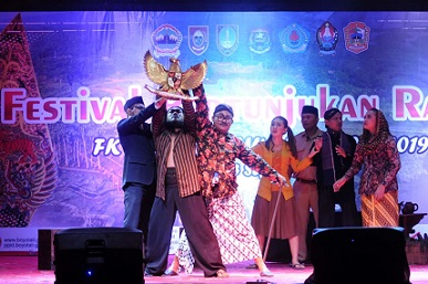 FOKUS JATENG-BOYOLALI-Tampilan Kabupaten Boyolali sebagai tuan rumah pelaksanaan final Festival Pertunjukan Rakyat Forum Komunikasi Media Tradisional (FK Metra) Jawa Tengah Tahun 2019, menutup keseluruhan penampilan finalis. Selain Boyolali, masih terdapat lima Kabupaten/Kota di Jawa Tengah yang mengikuti babak ini yakni Kabupaten Temanggung, Brebes dan Karanganyar serta Kota Surakarta dan Tegal yang digelar di Kebun Raya Indrokilo Boyolali (KRIB) pada Jumat (13/9/2019). Antusiasme ribuan penonton memadati Plaza KRIB dari siang hingga selesainya acara.