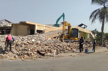 Bangunan pasar dirobohkan dengan menggunakan alat berat atau begu. Perobohan bangunan diawali di bagian lantai atas. Setelah roboh, barulah dilanjutkan bangunan bagian bawah.