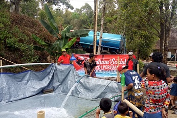 FOKUS JATENG-BOYOLALI-Pengurus Anak Cabang (PAC) PDI Perjuangan kecamatan Cepogo menyalurkan bantuan air bersih kepada warga di sejumlah desa wilayah kecamatan Cepogo Boyolali, Kamis (3/10/2019). Sebanyak enam tangki yang diberikan kepada warga di enam dukuh di tiga desa yang berada lereng gunung Merbabu sisi timur itu.