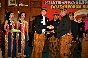 H.M Mashuri dan KRMH Aryo Adisena selaku pendiri FBM secara simbolik melantik kepengurusan Yayasan Forum Budaya Mataram masa bhakti 2019 – 2024.