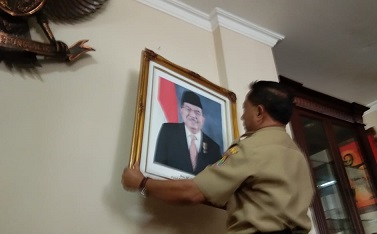 Dijelaskan setelah semua foto presiden dan wapres lama diseluruh ruangan gedung DPRD diturunkan. Selanjutnya, foto tersebut dikumpulkan dan disimpan. “Iya, sesuai instruksi paska pelantikan Presiden Joko Widodo dan Wakil Presiden Ma’ruf Amin, maka foto itu diturUnkan dan sore ini diganti yang baru,” katanya.