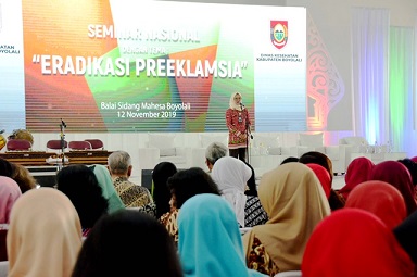 Hal tersebut disampaikan Kepala Dinkes Kabupaten Boyolali, Ratri S Survivalina saat ditemui dalam acara Seminar Nasional dengan tema Eradikasi Preeklamasia di Balai Sidang Mahesa, pada Selasa (12/11/2019). Dalam acara tersebut turut mengundang seluruh karyawan fasilitas pelayanan kesehatan.