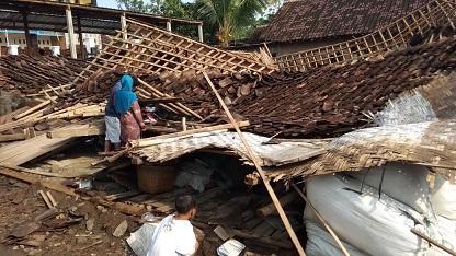 “Anginnya kencang sekali dan hujan deras, karena cuaca gelap sehingga kami belum bisa membersihkan reruntuhan. Baru pagi hari ini bisa bergotong royong,” ujar Karmin (53) warga RT 7 RW 5, Dusun/Desa Manggung.