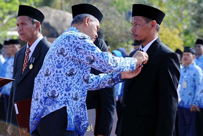 Dalam pelaksanaan upacara itu, Sekda Masruri menyerahkan penghargaan Satyalancana Karya Satya kepada sejumlah pegawai yang telah mengabdi selama 10 atau 20 atau 30 tahun lebih secara terus menerus.