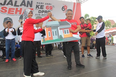 “Luar biasa antusias masyarakat. Kegiatan jalan sehat merupakan rangkaian peringatan HUT ke-69 DPRD Boyolali,” katanya.