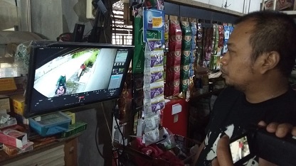 Mereka berhenti di samping kios kelontong dan tepat dibawah CCTV. Mereka pun sempat mengawasi kondisi lingkungan sekitar. Setelah terlihat sepi, pelaku yang mengenakan jaket merah langsung mendekati kambing yang ada di pinggir jalan kampung Dukuh Senting.
