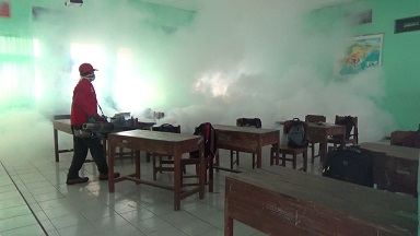“Selama fogging kegiatan belajar mengajar ya dihentikan sementara, karena pengasapan dilakukan sampai ke sudut ruang kelas. Akan sangat bahaya kalau kegiatan belajar mengajar tetap dilakukan,” ujarnya.