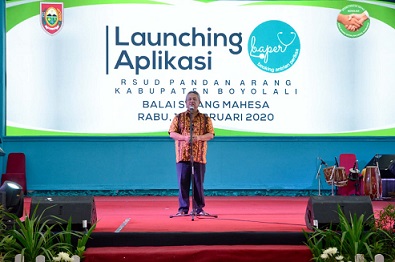 FOKUS JATENG-BOYOLALI-Meski sudah dijalankan kurun sebulan, aplikasi Booking Antrian Periksa (BAPER) di Rumah Sakit Umum Derah Pandan Arang (RSUDPA) Boyolali resmi diluncurkan oleh Bupati Boyolali, Seno Samodro pada Rabu (19/2/2020). Bertempat di Balai Sidang Mahesa, peluncuran aplikasi pelayanan kesehatan yang memanfaatkan teknologi informasi ini diapresiasi oleh orang nomor satu di Kota Susu.